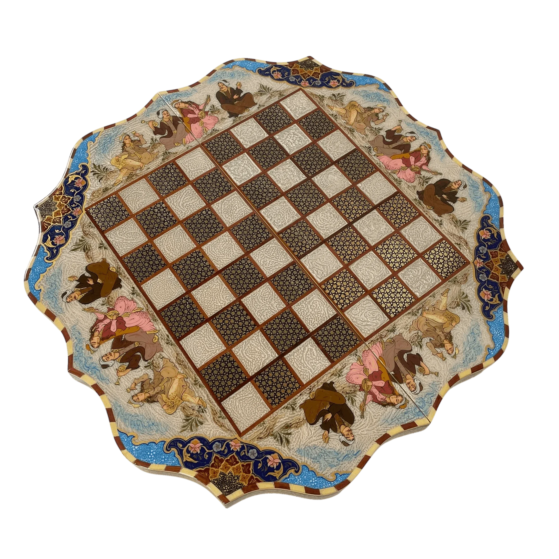 The solar-themed backgammon and chess board is one of the most luxurious and artistic works of Arabian handicrafts; a combination of several original arts such as inlay work, illumination, and miniature painting, which has been manifested in the form of an eye-catching and unique work.