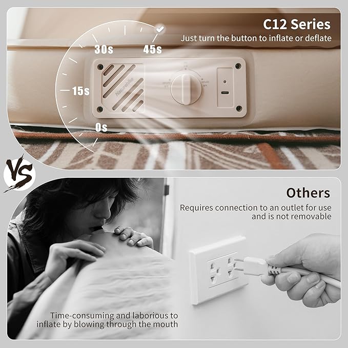 - Built-In Electric Pump — 45,000 rpm motor inflates or deflates in 45 seconds; 4000 mAh rechargeable battery supports up to 12 uses per charge