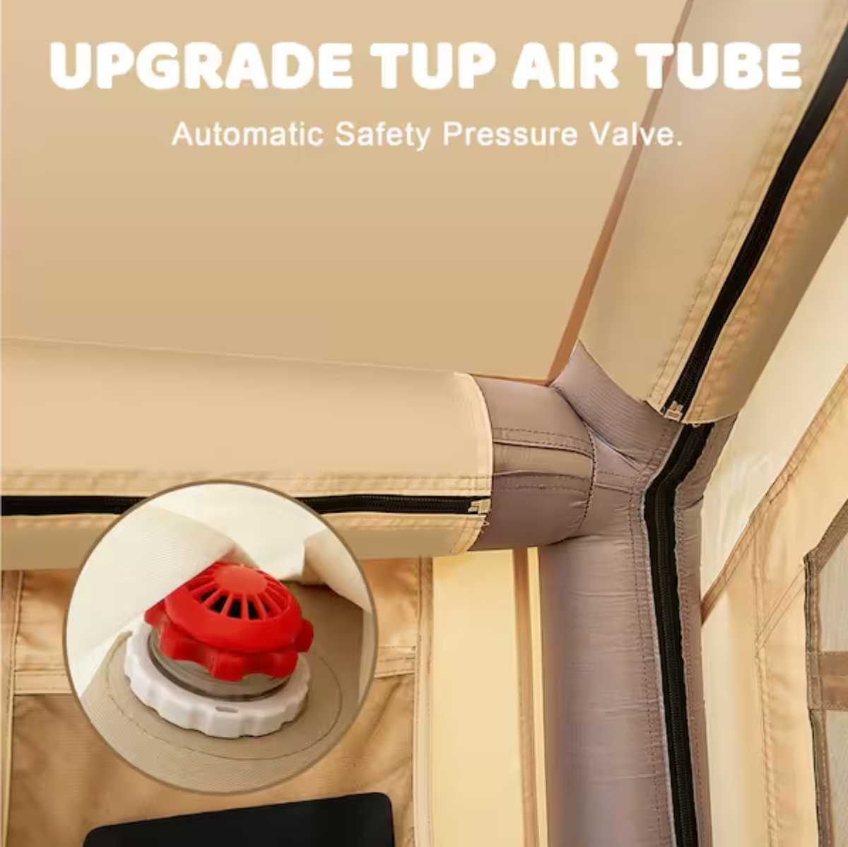 - 5 min Easy Setup Inflatable Tent: The inflatable camping tent features an Innovative Inflatable beam frame,no need for complex rods; setup and storage are a breeze. It comes with a High-Pressure Fast Inflation Air Pump, and you can have the tent ready in just 5 minutes. Compared to traditional camping tents, it is much simpler to set up and quicker to pack away.